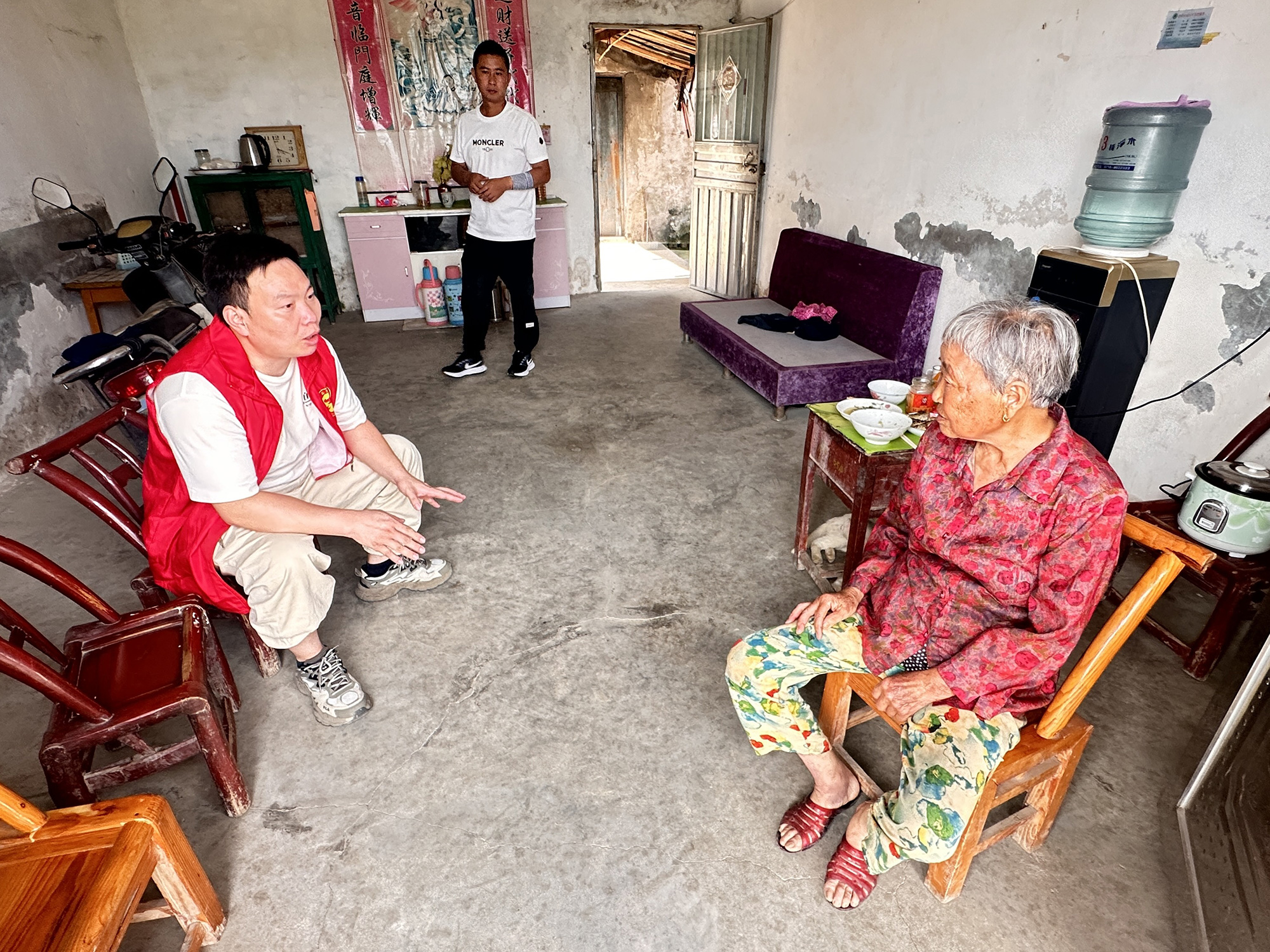 2025年7月1日下午,走访队伍在八岭山新湾村村委会工作人员的热情陪同下,踏上了入户走访之路。工作人员们精神饱满、态度亲切,带着满满的诚意与关怀,走进一位位接受过养老服务的老人家中。每到一处,他们都与老人亲切交谈,耐心倾听老人讲述服务过程中的点点滴滴,从日常照料到健康关怀,从精神慰藉到文化娱乐,不放过任何一个细节,力求全面、深入地了解服务实际情况。