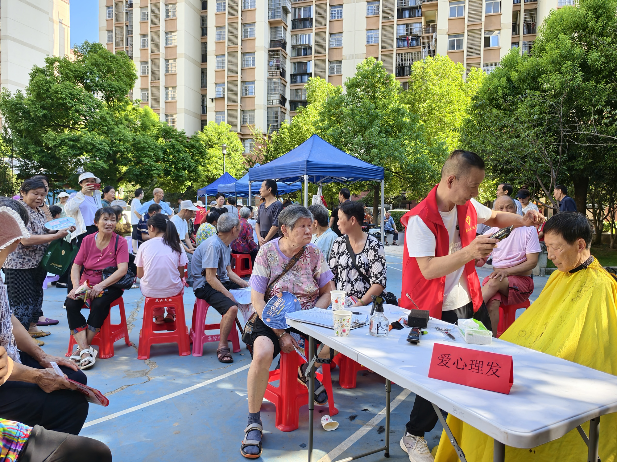 爱心理发显温情:活动现场特设理发区,志愿者们提前到位准备,9点起有序为老人领号理发。轻柔的动作、耐心的沟通,让老人们在清爽发型中感受到社区的细致关怀,不少老人理完发后笑着说:“这下精神多了!”