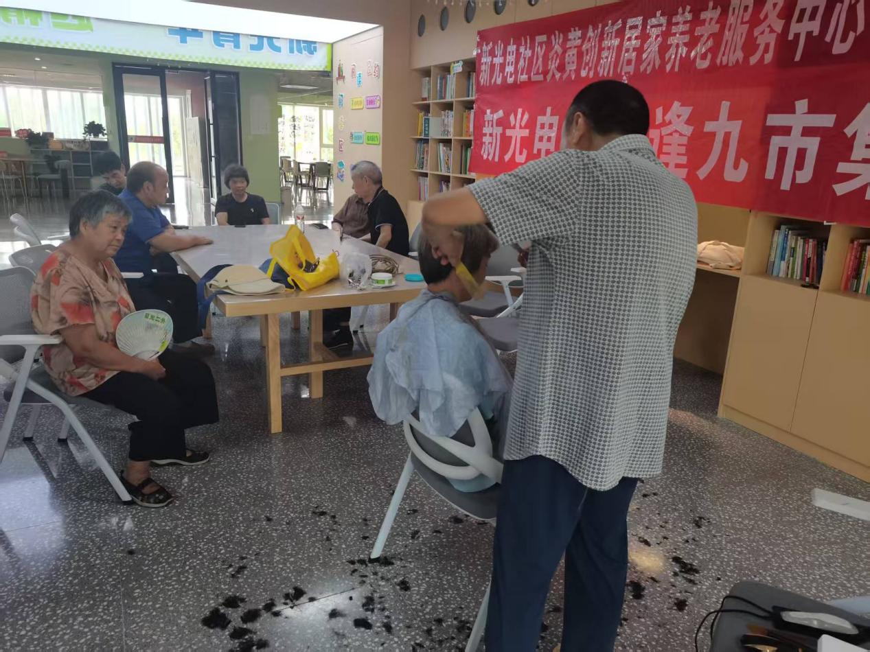 最后,新光电社区养老服务中心还免费为老人们理发。活动现场,老人们井然有序的排队等候,理发师一边和老人聊天一边为老人们围上围布,并耐心亲切的询问着老人需要修剪什么样的发型,老人们高兴的说:人老了,想出门剪个头发都不容易,现在走几步路在家门口就能理发,真的是很方便。理发师也耐心的运用娴熟的理发技术,细心地为每一位老人修剪头发,看着理出的清爽利落的发型,老人们一个个脸上露出了满意的笑容。