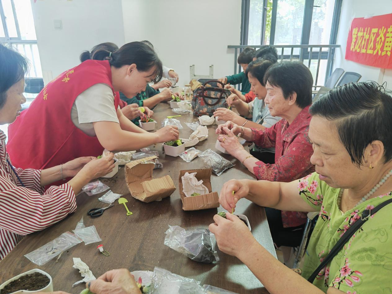 近日,龙泉街腾龙社区老年活动中心内欢声笑语,绿意盎然。一场以“指尖添绿,乐享生活”为主题的多肉植物种植活动在这里温馨开展,吸引了数十位老年朋友的热情参与。活动旨在丰富老年人的精神文化生活,锻炼动手能力,同时倡导绿色健康的生活理念。