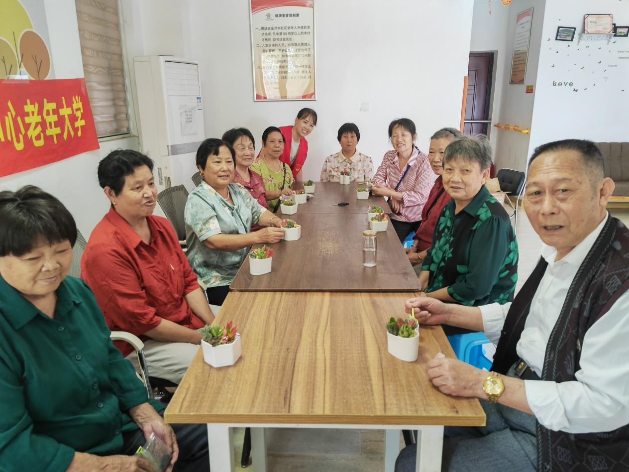 不一会儿,一盆盆独具匠心、错落有致的多肉盆栽在大家的巧手中诞生。老人们捧着自己精心创作的作品,成就感溢于言表,纷纷合影留念,记录下这愉快的瞬间。
