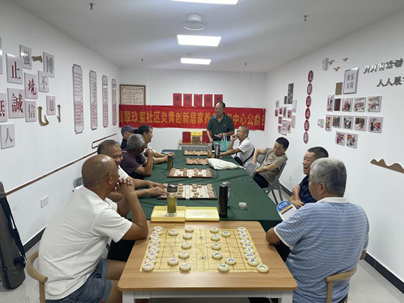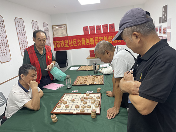 “马走日,象飞田,炮打隔山子……” 9月16日,万科翡翠玖玺社区老年服务中心活动室内人声鼎沸、楚河汉界 “硝烟” 弥漫,一场由武汉炎黄创新居家养老服务中心专为社区老年人打造的象棋友谊赛在此热闹开赛。这次比赛旨在以象棋为纽带,丰富老年居民精神文化生活,增进邻里情谊。