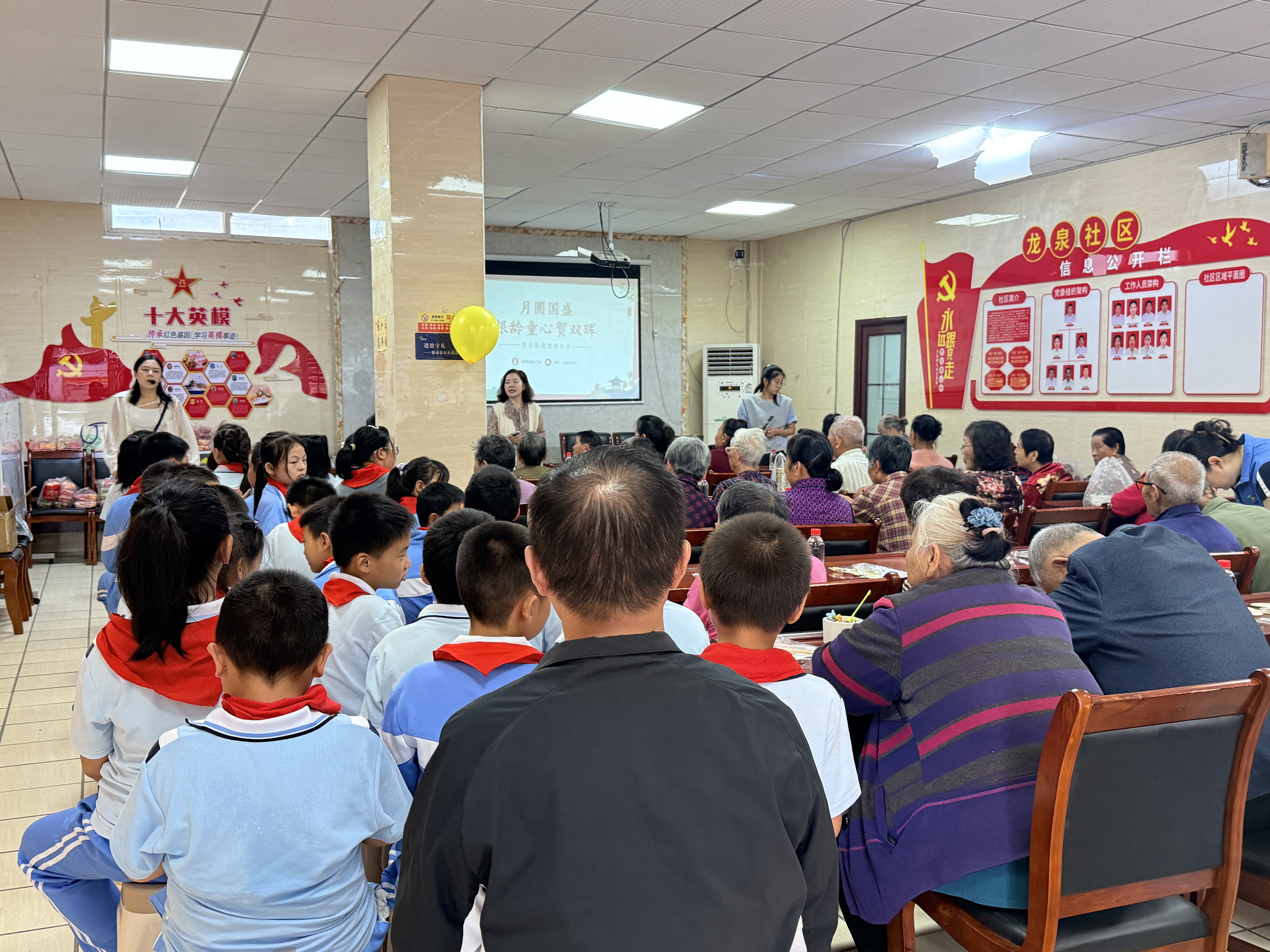 为弘扬中华民族尊老爱老传统美德,营造“老有所乐、老有所依”的社区氛围,在中秋佳节与国庆节双节来临之际,龙泉社区携手炎黄创新,以“情暖中秋·共庆生辰”为主题,开展老人集体生日会暨中秋庆祝活动。通过“代际互动+节日关怀”的创新形式,为社区老人送上节日祝福与生日惊喜,传递社区温暖。本次活动吸引了近50名长者积极参与,并且龙泉社区提前联动龙泉小学,邀请学生与老人结对,现场欢声笑语,气氛温馨热烈。