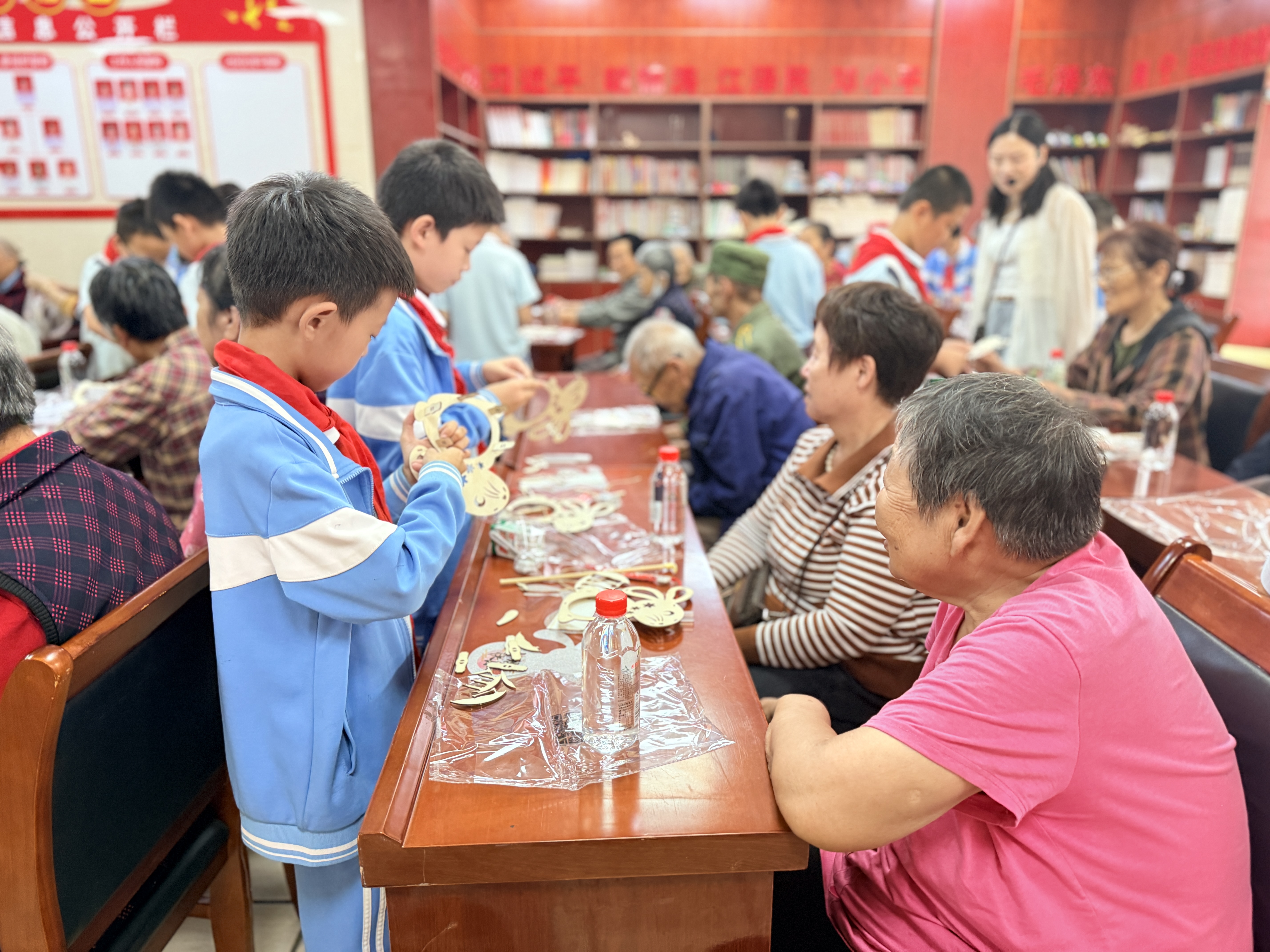 活动在老少携手拼搭玉兔灯笼制作环节则将气氛推向高潮,长者们耐心指导,孩子们灵动创意,一双双巧手共同制作出一个个精美的灯笼,灯笼上“中秋快乐”“花好月圆”等祝福字样,寄托着大家对于家庭和祖国深厚的情谊。
