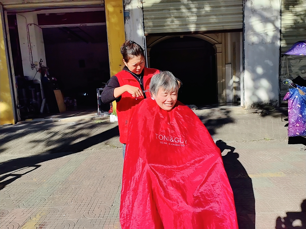 等到家里卫生打扫得差不多,龚学丹从包里拿出理发推子,插上电试了试。“从上次剪到现在有半个月了吧?”手指穿过她的头发比量着“还照着上次长度来?”推子嗡嗡地响着,碎发落在围布上,她时不时用梳子拢一拢,动作不快,但稳当得很。