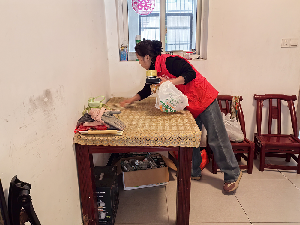 门被轻轻推开,龚学丹拎着自己的工具包走进来,说:“大姐,今天天气好,我把窗户都打开让屋里透透气,,有几天没过来了,给你把家里收拾一下”。说着她拿起抹布擦拭窗台,清扫地上的垃圾和头发丝,连死角沙发底下的纸屑都没放过。陈远芳劝她不用做的太细致,差不多就行。她头也不抬地说“没事,顺手的事儿,干净点你们住着更舒坦”,就埋头干活。