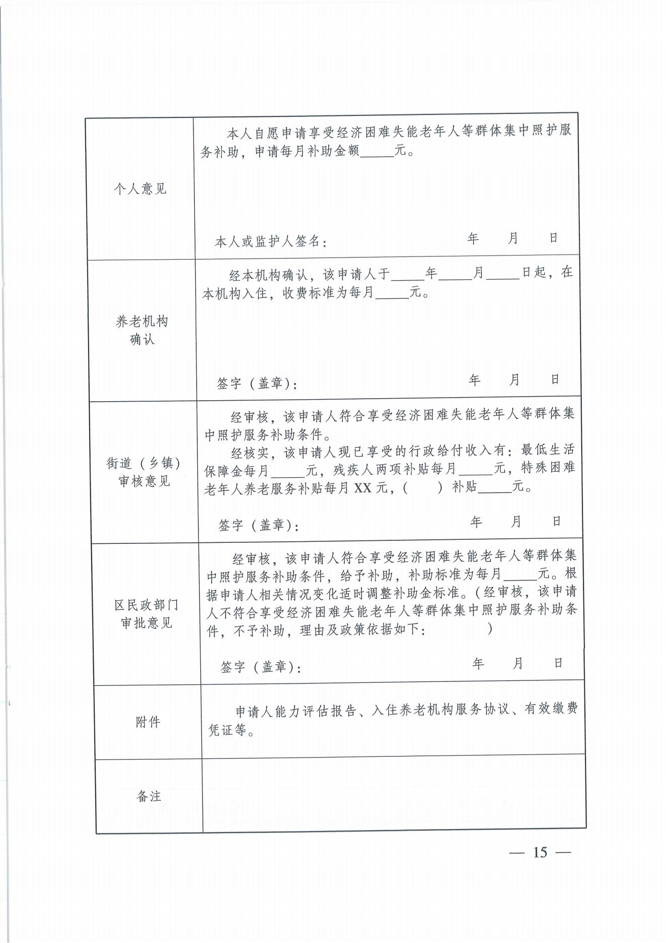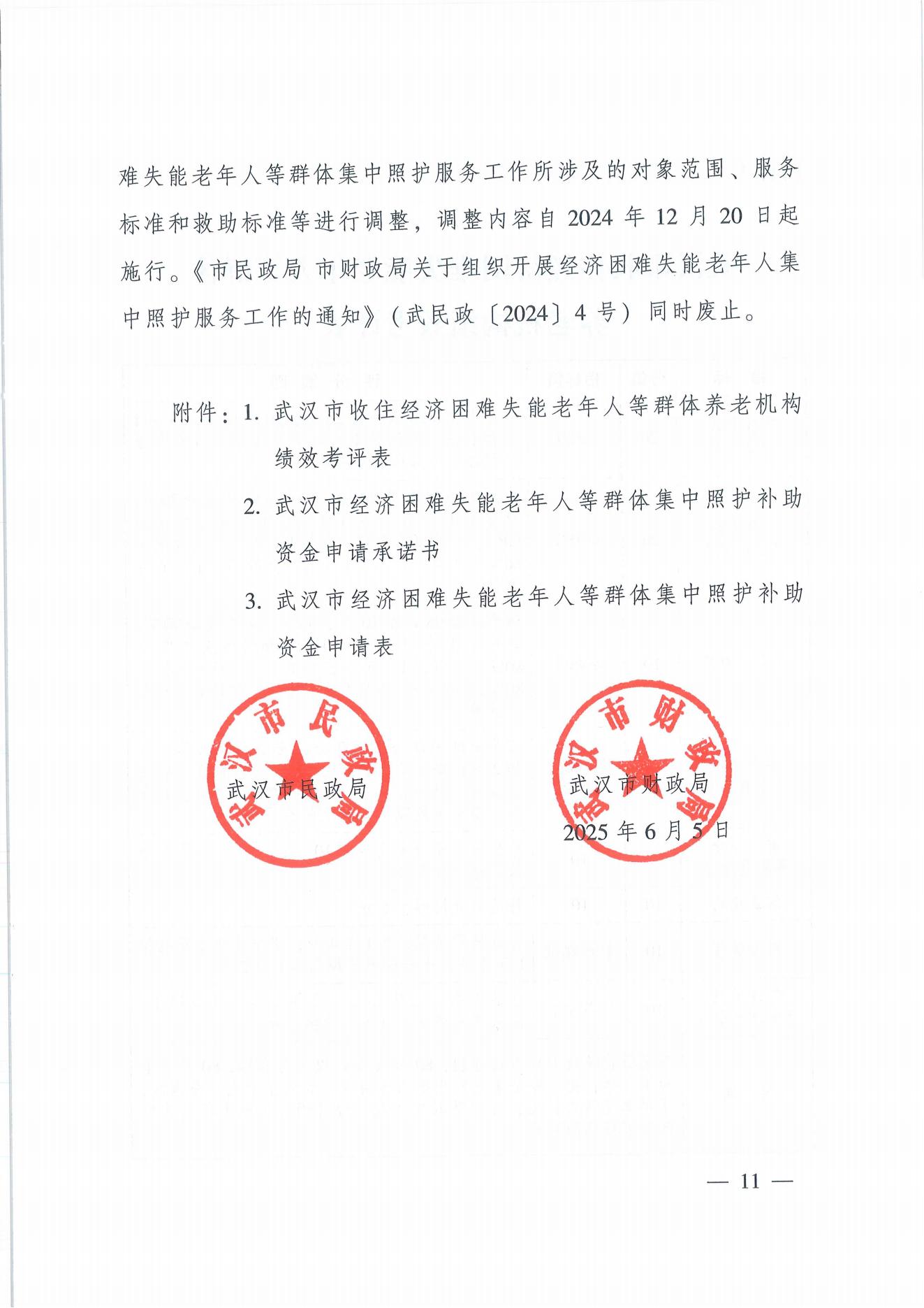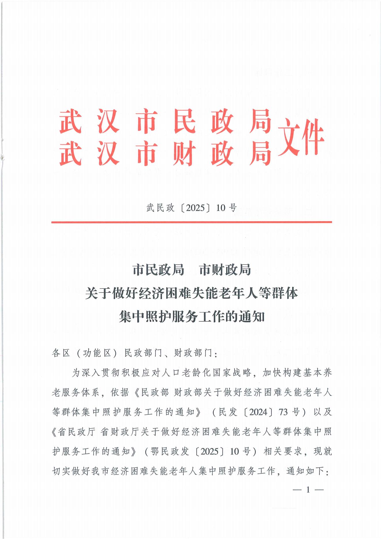 武汉市《关于做好经济困难失能老年人等集中照护服务工作》的通知 2025年9月19日 12:00:49小锋谈养老 小锋谈养老 管理员 关注 831文章 1粉丝 政策法规评论288阅读模式 摘要经济困难失能老年人等群体集中照护工作,依托市养老服务综合平台,实现申请、评估、签约、补助、审核、变更、终止等流程的线上办理。 政策依据 点赞 登录收藏 https://www.zhyl.net/zhengce/21219.html 复制链接 复制链接