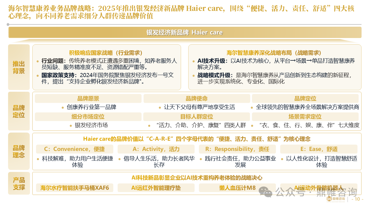 ◆ 发布银发经济子品牌 “Haier care”,以 AI 技术为核心重构养老体验
