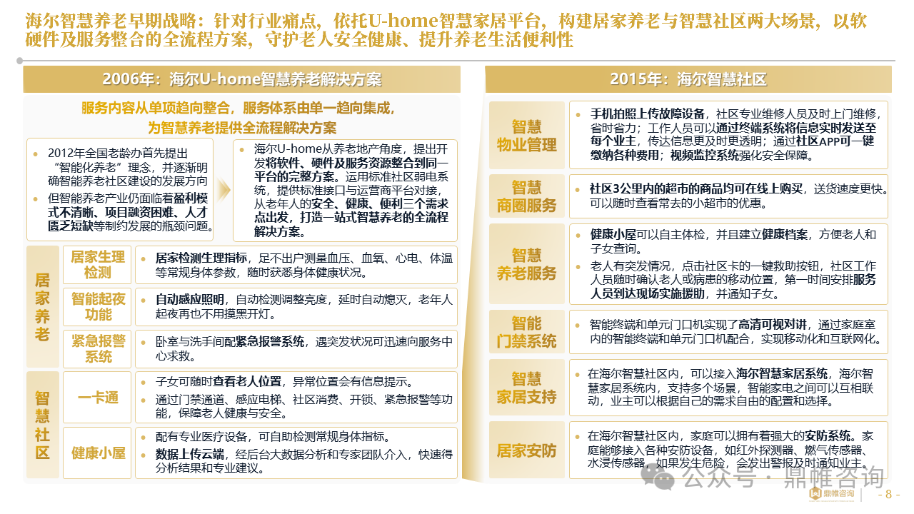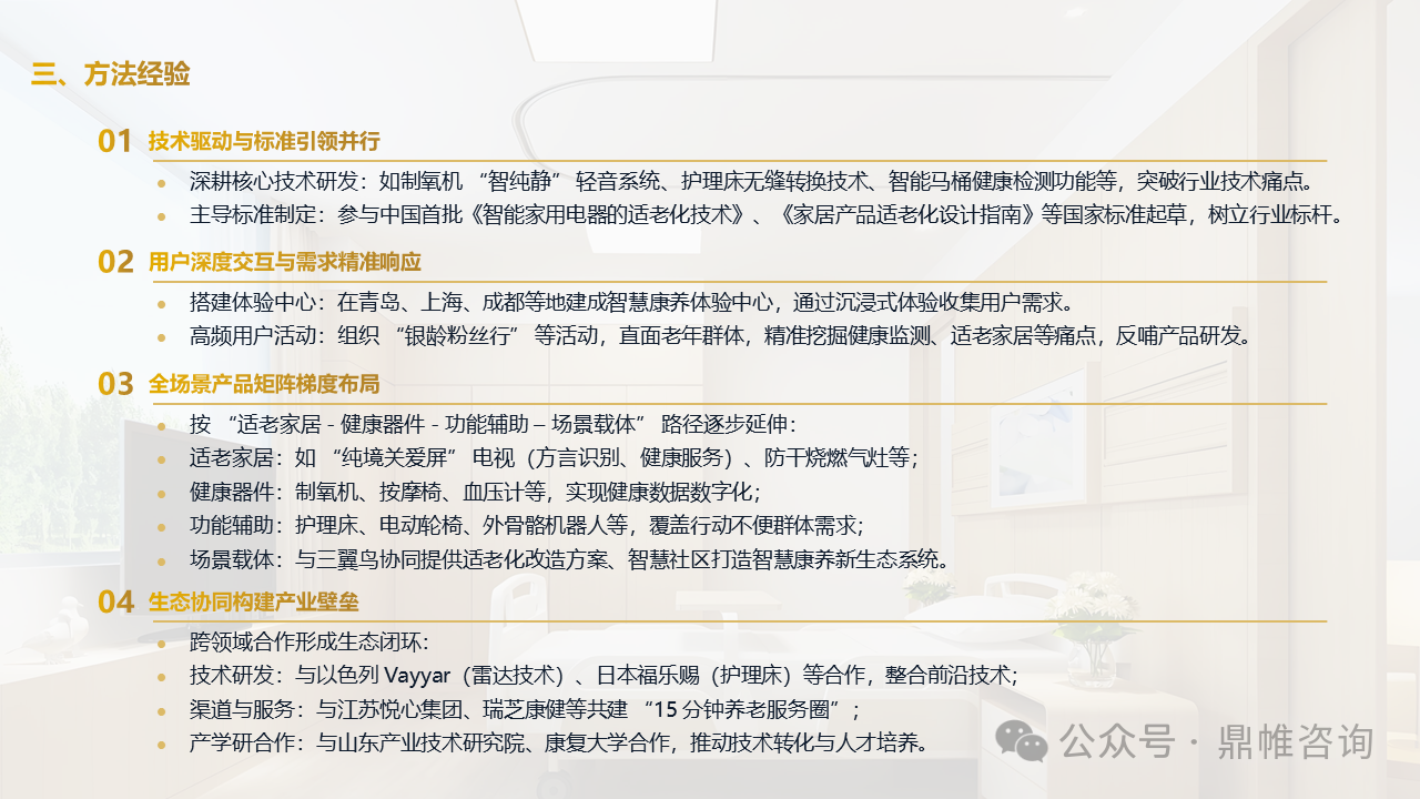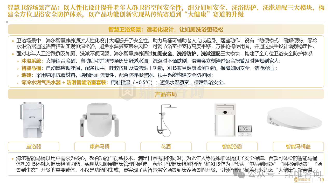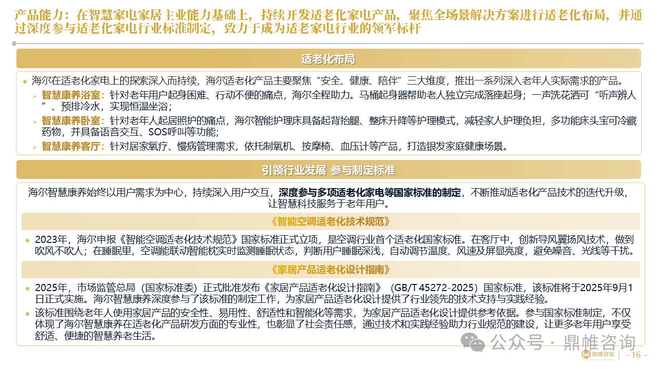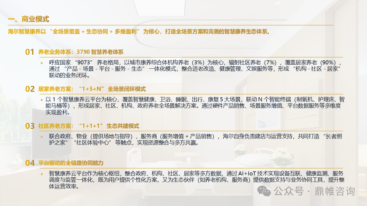 ◆ 成立 “海尔智慧康养” 品牌,整合智能卫浴、家庭医疗、智慧睡眠三大业务板块,布局 “1+4” 养老模式;