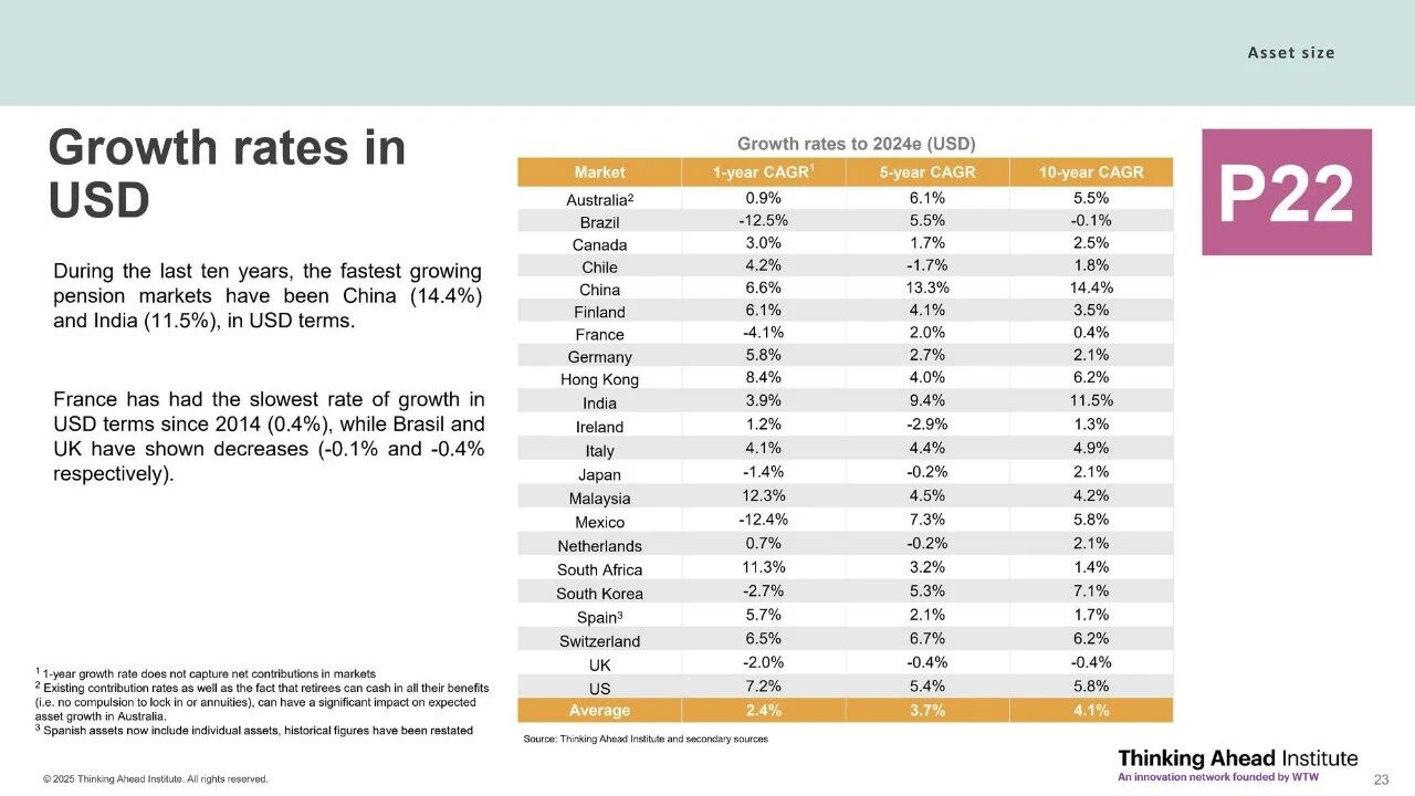 报告还深入分析了定额福利(DB)和缴费型(DC)养老金计划的分化趋势。数据显示,过去十年间,DC资产的增长率为6.7%,而DB资产的增长率仅为2.1%。这种分化反映了全球养老金市场从传统的DB计划向DC计划的转变趋势。DC计划的灵活性和个人化特点使其在全球范围内受到越来越多的关注和欢迎。